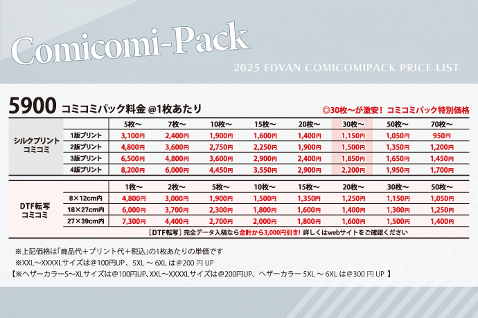 追加製作とは初回と同じ版型での製作ですので、同じデザインでもプリントの大きさを変更する場合は新規版となりますのでご注意下さい。