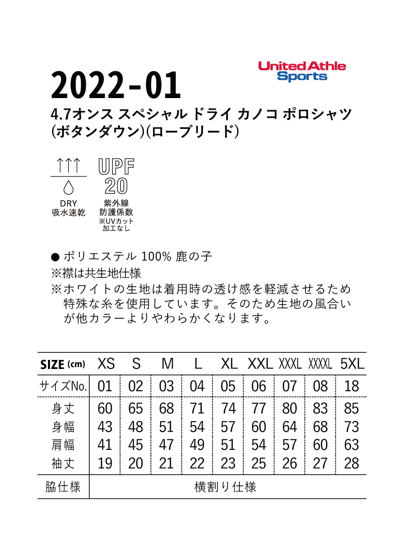 オリジナルTシャツTOP > ポロシャツ一覧 > United Athle Sports 2022 4.7オンス スペシャルドライカノコポロシャツ(ボタンダウン)(ローブリード)