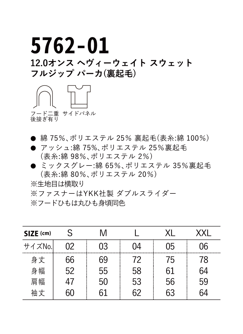 | 商品名 | 12.0オンス ヘヴィーウェイト スウェット フルジップ パーカ(裏起毛) |