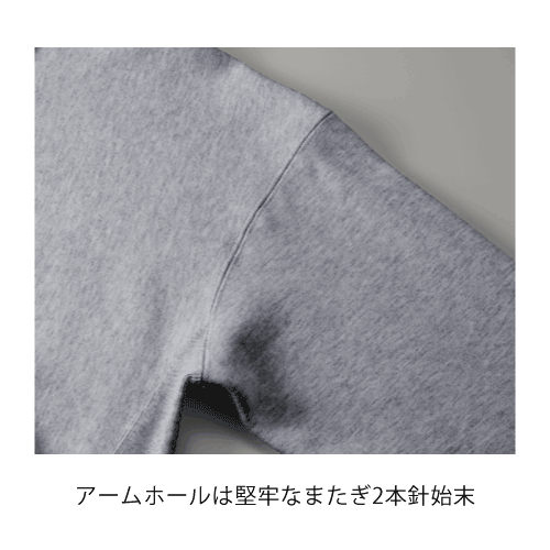 | 素材 | 基本:綿 75%、ポリエステル 25% [表糸]綿 100% アッシュ:綿 75%、ポリエステル 25% [表糸]綿 98%、ポリエステル 2% ミックスグレー:綿 65%、ポリエステル 35% [表糸]綿 80%、ポリエステル 20% |