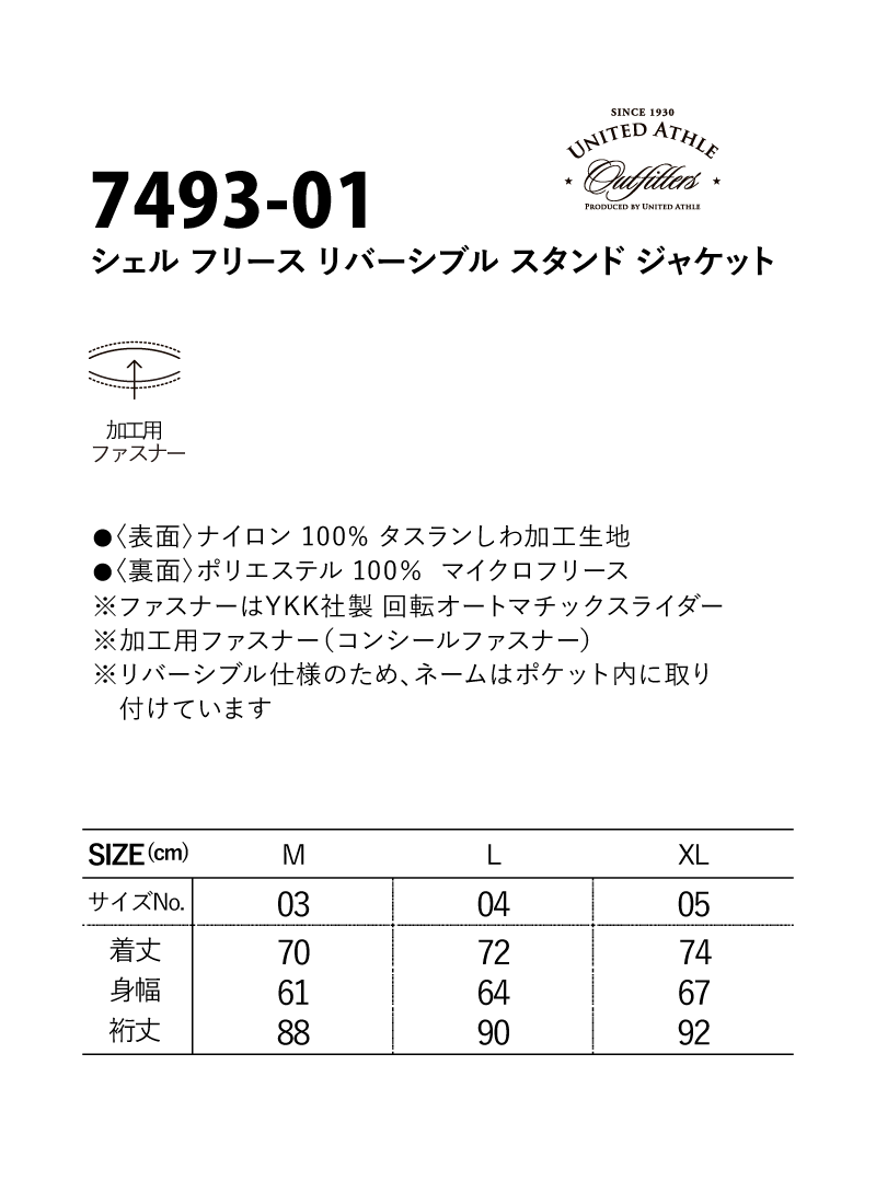 オリジナルTシャツTOP > 防寒ジャンパー・コート一覧 > United Athle 7493 シェル フリース リバーシブル スタンド ジャケット -NEW-