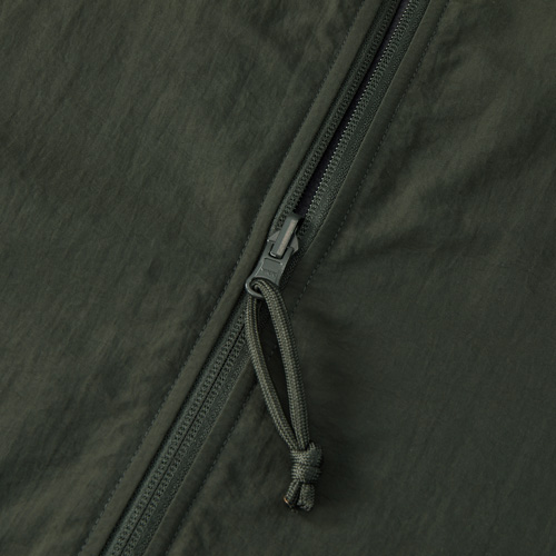 ファスナーはYKK社製 回転オートマチックスライダー仕様、パラコードの引き手はナイロン面と身頃同色