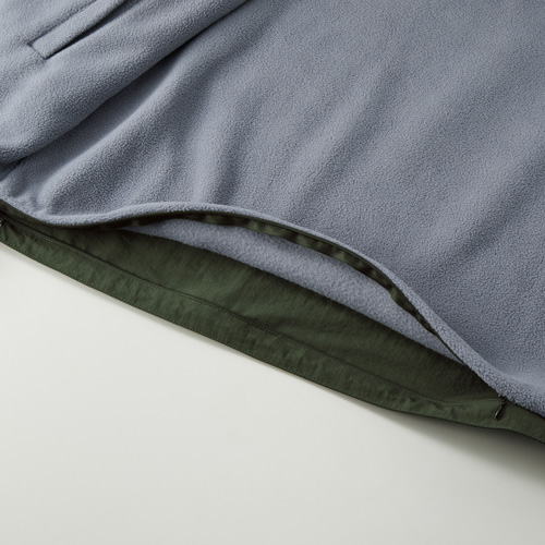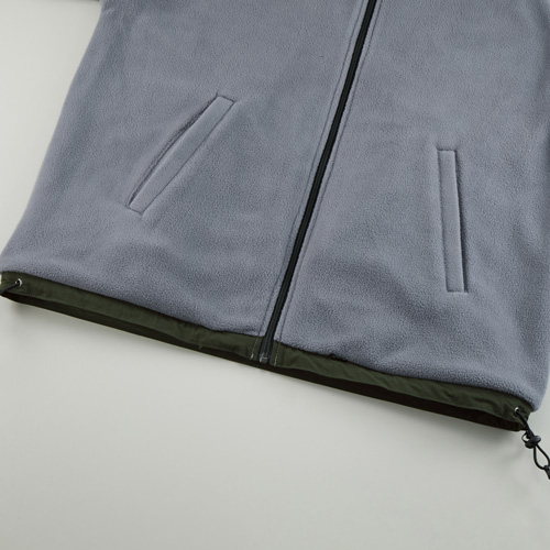フリース面の裾部分にはプリント加工に便利なコンシールファスナー付き