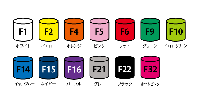 プリント色指示はFカラー、またはDICカラーでお選びいただくか、色見本でご指示ください。その際、お客様の画面の色と弊社の画面の色合いは異なりますので多少の誤差は御了承下さい。